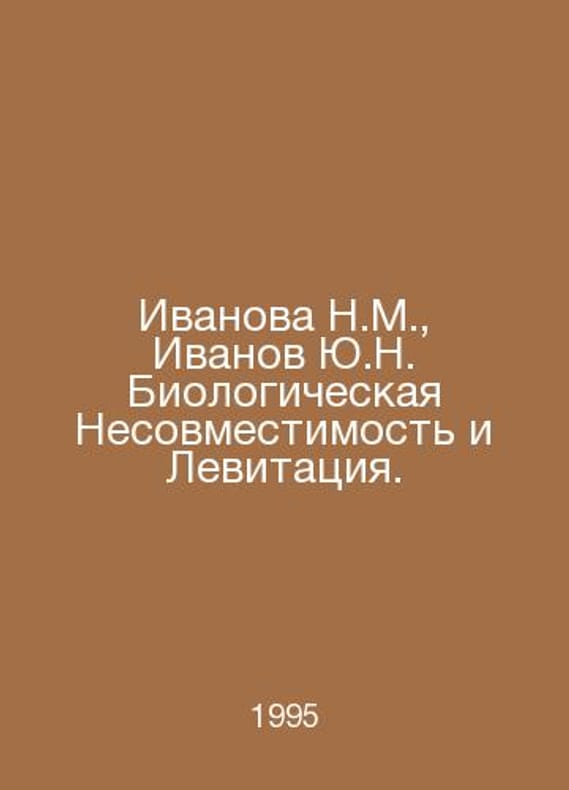 Ivanova N.M., Ivanov Yu.N. Biological Incompatibility and Levitation. In Russian /Ivanova N.M., Ivanov Yu.N. Biologicheskaya Nesovmestimost i Levitatsiya. Ser: Life according to intuition. M Ivanova 1995. Contact us for details or to request photos of available books. Delivery of this book could take longer than normal due to additional handling time before shipping, and no rush delivery options are available. Please let us know if you have a specific date by which you need to receive your order. SKUalbfed111db0cd67965