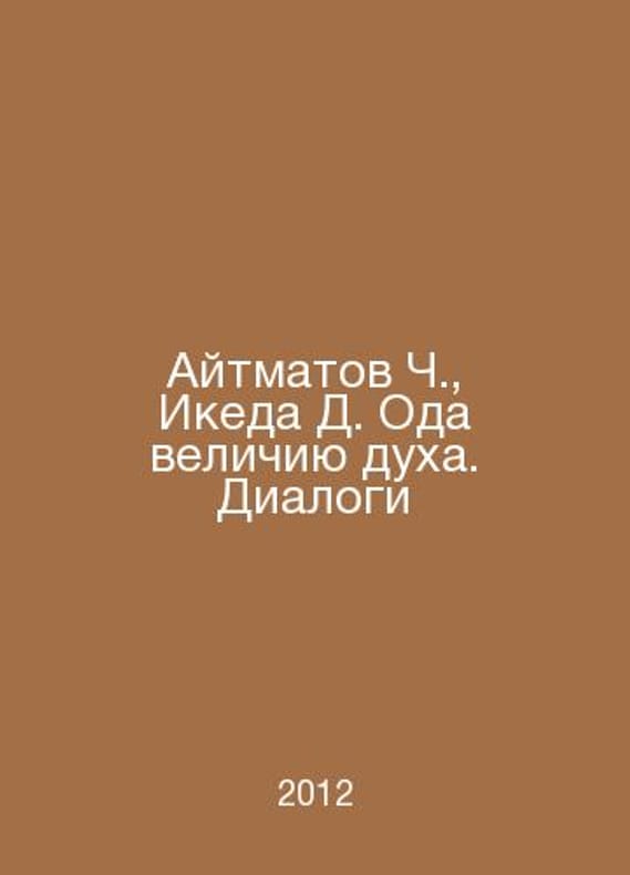Aitmatov Ch., Ikeda D. Oda to the greatness of spirit. Dialogues In Russian /Aytmatov Ch., Ikeda D. Oda velichiyu dukha. Dialogi Moscow State University 2012.Contact us for details or to request photos of available books. Delivery of this book could take longer than normal due to additional handling time before shipping, and no rush delivery options are available. Please let us know if you have a specific date by which you need to receive your order.SKUalbff44e77f90101263