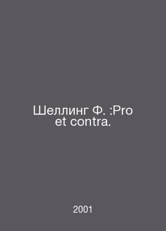 Schelling F.: Pro et contra. In Russian /Shelling F.:Pro et contra. St. Petersburg Publishing House of the Russian Christian Humanitarian Institute 2001.Contact us for details or to request photos of available books. Delivery of this book could take longer than normal due to additional handling time before shipping, and no rush delivery options are available. Please let us know if you have a specific date by which you need to receive your order.SKUalbff475b31601bdbbb