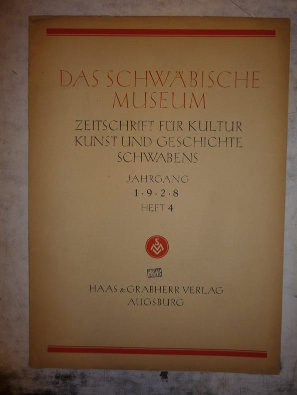Das Schwabische Museum. Zeitschrift fur Kultur, Kunst und Geschichte Schwabens, publisher: Haas&Grabherr Verlag, Augsburg, In German, 1928, 1929. The listing price of $99 is for a single issue of the periodical. Several issues are available during the period indicated in the listing title. Please inquire about availability of specific issues, id3-008903
