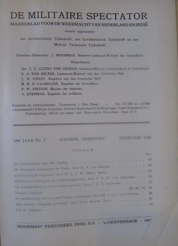 De Militaire spectator, Hague, In Dutch, 1936, 1940. The listing price of $99 is for a single issue of the periodical. Several issues are available during the period indicated in the listing title. Please inquire about availability of specific issues, id3-008908