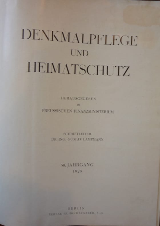 Denkmalpflege und Heimatschutz, Berlin, 1928, In German. The listing price of $99 is for a single issue of the periodical. Several issues are available during the period indicated in the listing title. Please inquire about availability of specific issues, id3-008912