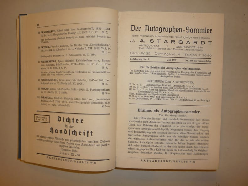 Der Autographen, Sammler. Eine Monatlich Erscheinender Katalogfolde des Hauses, publisher: J.A. Stargardt, Berlin, In German, 1936, 1937, 1938, 1939. The listing price of $99 is for a single issue of the periodical. Several issues are available during the period indicated in the listing title. Please inquire about availability of specific issues, id3-008917