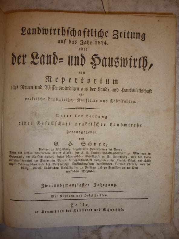 Landwirthschaftliche Zeitung. Der Land und Hauswirth, Halle, 1824, In German. The listing price of $99 is for a single issue of the periodical. Several issues are available during the period indicated in the listing title. Please inquire about availability of specific issues, id3-008930
