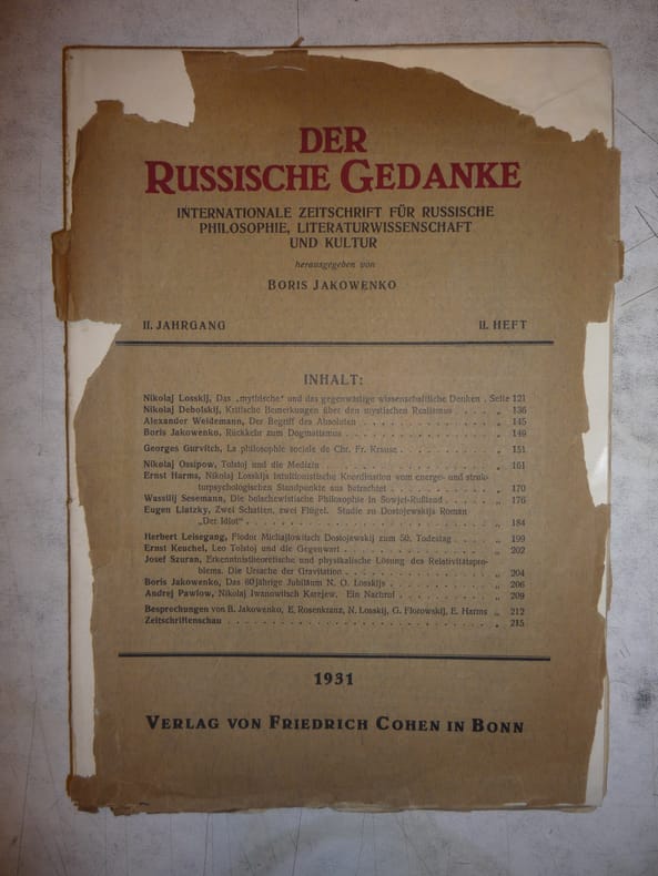 Der Russische gedanke, Bonn, 1931, In German. The listing price of $99 is for a single issue of the periodical. Several issues are available during the period indicated in the listing title. Please inquire about availability of specific issues, id3-008938