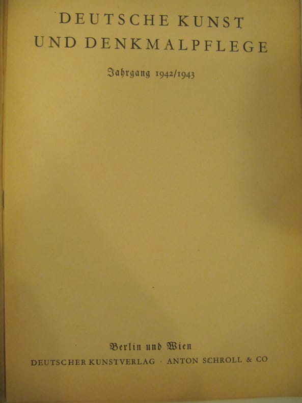 Deutsche Kunst und Denkmalpflege, Berlin/Vienna, In German, 1935, 1936, 1942. The listing price of $99 is for a single issue of the periodical. Several issues are available during the period indicated in the listing title. Please inquire about availability of specific issues, id3-008955