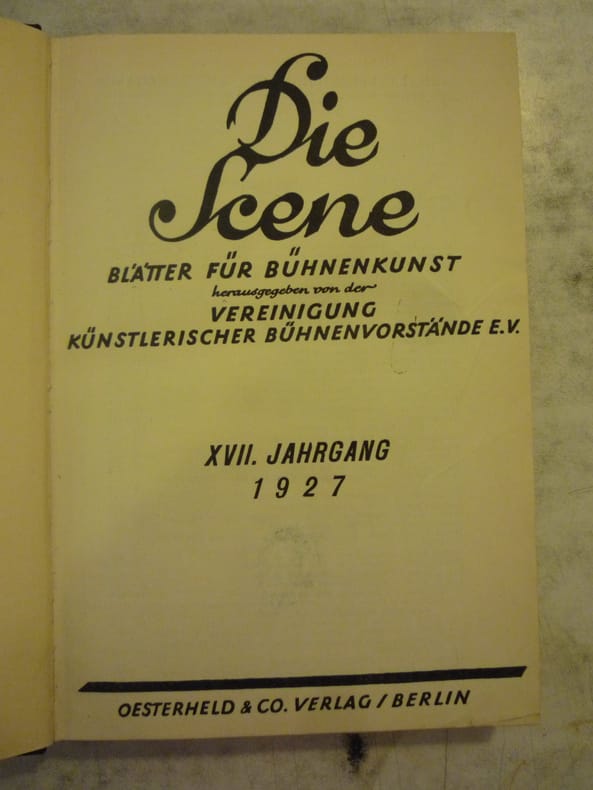 Die Scene. Blatter fur Buhnenkunst, publisher: Oesterheld & Co.Verlag, Berlin, In German, 1927, 1930. The listing price of $99 is for a single issue of the periodical. Several issues are available during the period indicated in the listing title. Please inquire about availability of specific issues, id3-008967