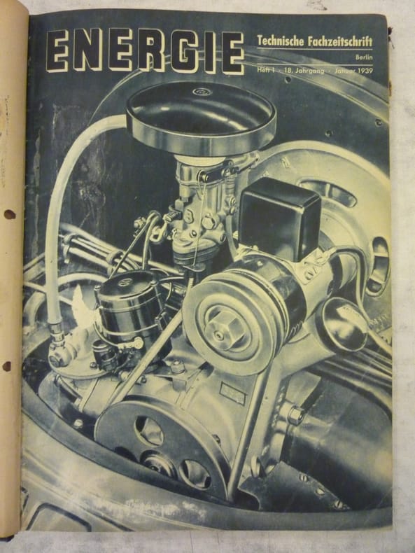 Energie. Technische Fachzeitschrift fur Maschinenbau Elektrotechnik, Berlin, 1939, In German. The listing price of $299 is for a single issue of the periodical. Several issues are available during the period indicated in the listing title. Please inquire about availability of specific issues, id3-008990