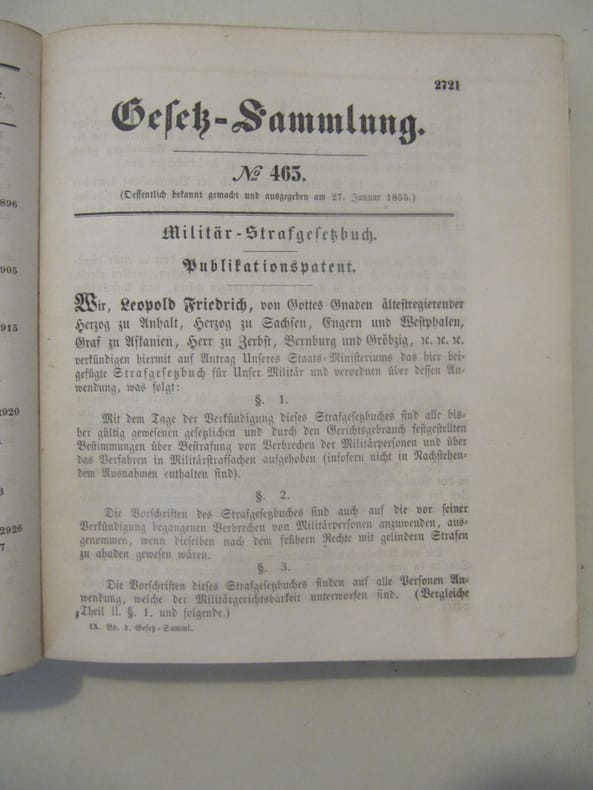 Gesetzsammlung, Dessau, In German, 1853, 1856. The listing price of $99 is for a single issue of the periodical. Several issues are available during the period indicated in the listing title. Please inquire about availability of specific issues, id3-009021