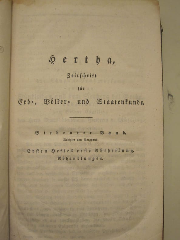 Hertha, Zeitshcrift fur Erd, volker, und staatenkunde, Stuttgart/Tubingen, In German, 1826, 1827, 1828, 1829. The listing price of $299 is for a single issue of the periodical. Several issues are available during the period indicated in the listing title. Please inquire about availability of specific issues, id3-009031