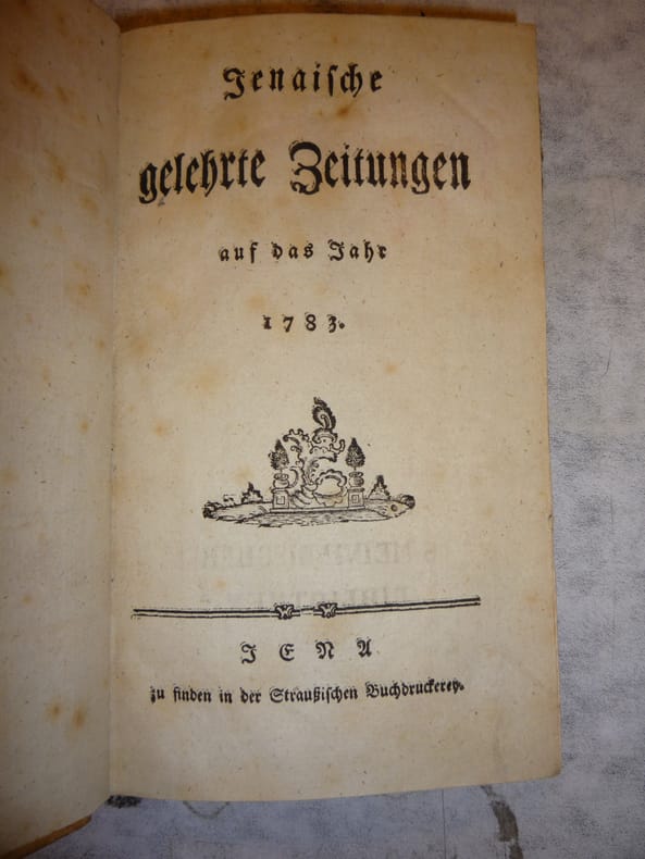 Jenaische gelehrte Zeitungen, Jena, In German, 1773, 1783. The listing price of $99 is for a single issue of the periodical. Several issues are available during the period indicated in the listing title. Please inquire about availability of specific issues, id3-009041