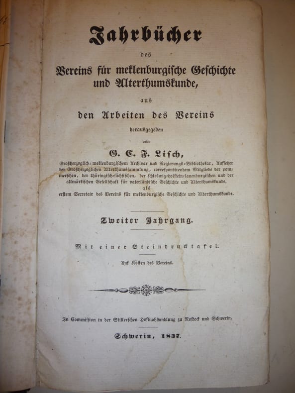 Jahrbucher des Vereins meklenburgische Geschichte und Alterthumskunde, Schwerin, 1832, In German. The listing price of $299 is for a single issue of the periodical. Several issues are available during the period indicated in the listing title. Please inquire about availability of specific issues, id3-009055