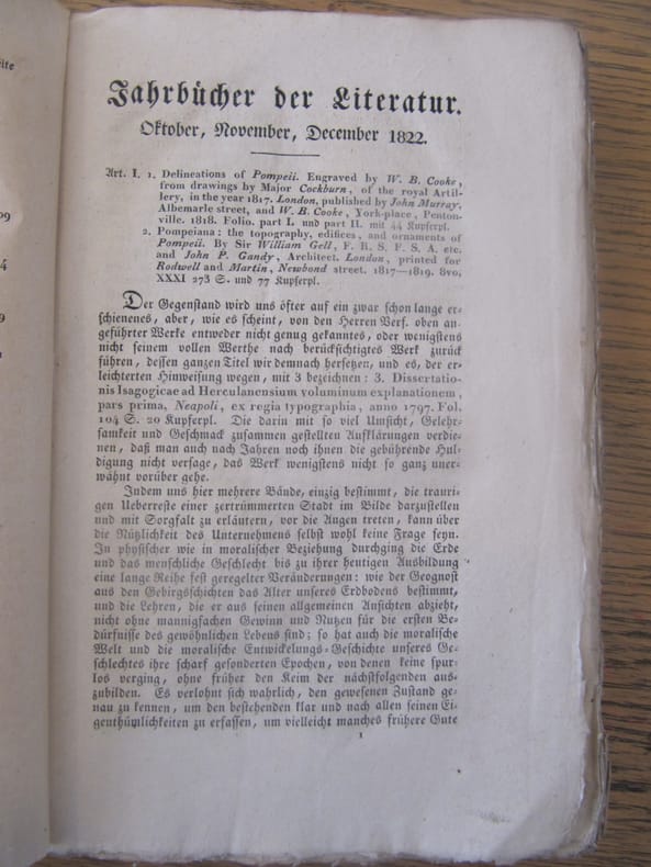 Jahrbucher der literatur, Vienna, 1822, In German. The listing price of $99 is for a single issue of the periodical. Several issues are available during the period indicated in the listing title. Please inquire about availability of specific issues, id3-009056