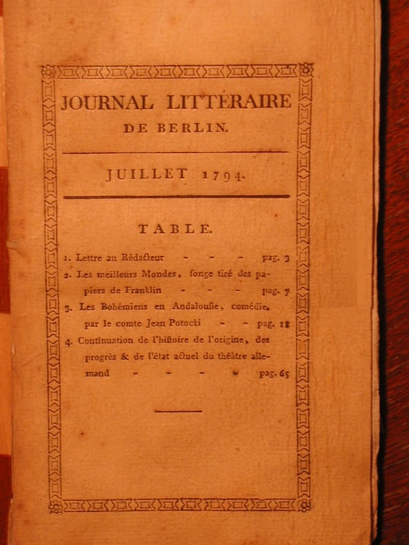 Journal litteraire de Berlin, Berlin, In French, 1794, 1795. The listing price of $299 is for a single issue of the periodical. Several issues are available during the period indicated in the listing title. Please inquire about availability of specific issues, id3-009062
