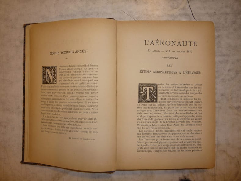 L Aeronaute. Bulletin Mensuel Illustre de la Navigation Aerienne, Paris, 1877, In French. The listing price of $299 is for a single issue of the periodical. Several issues are available during the period indicated in the listing title. Please inquire about availability of specific issues, id3-009108