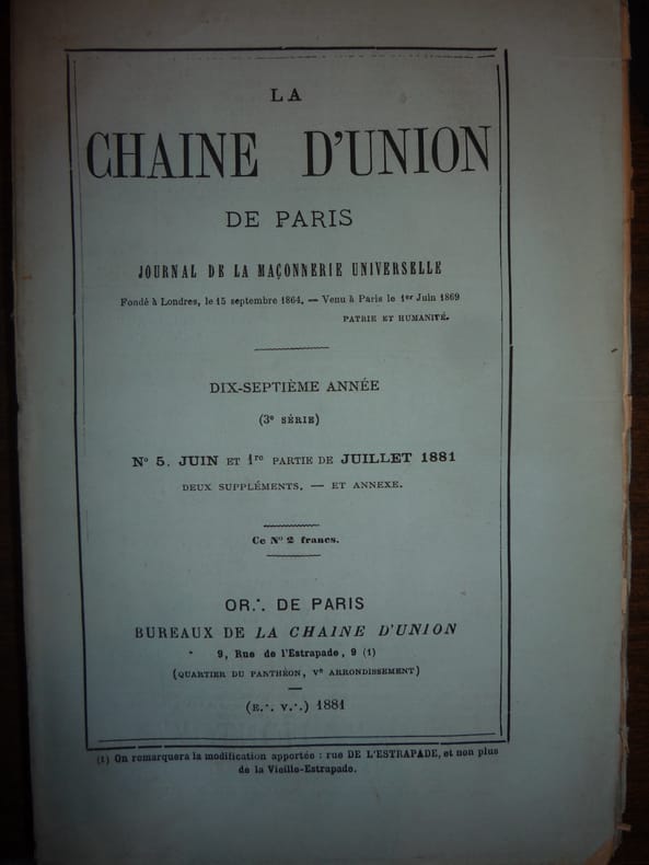 La chaine d union de Paris, Paris, In French, 1876, 1877, 1879, 1881, 1886. The listing price of $99 is for a single issue of the periodical. Several issues are available during the period indicated in the listing title. Please inquire about availability of specific issues, id3-009111