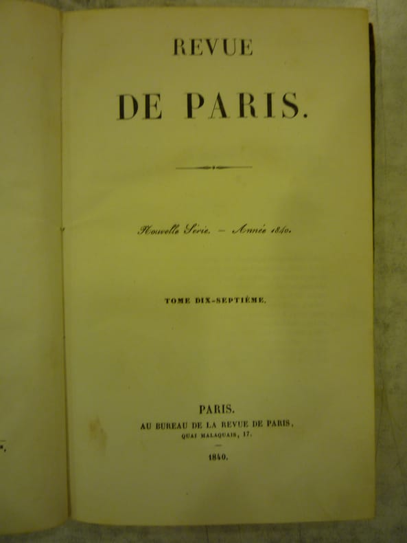 [Everat Imprimeur de la Revue de Paris Au Bureau de la Revue de Paris et chez Levavasseur] - Collectif ; VERON, Docteur ; (DELACROIX, Eugène ; SCRIBE, Eugène ; NODIER, Charles ; CHASLES, Philarète ; SAINTE-BEUVE ; MERIMEE, Prosper)
