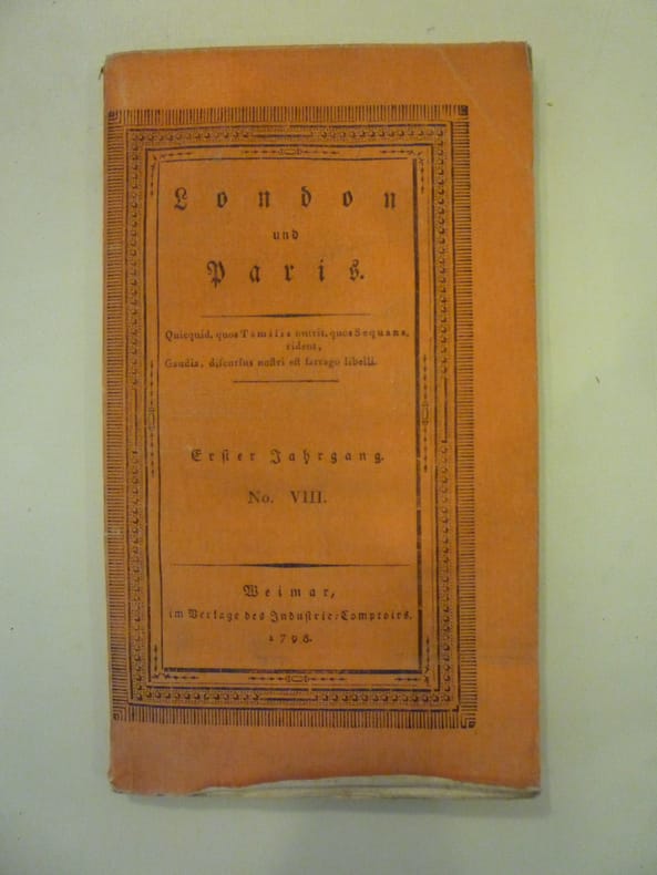 London und Paris, Weimar, 1798, In German. The listing price of $99 is for a single issue of the periodical. Several issues are available during the period indicated in the listing title. Please inquire about availability of specific issues, id3-009178
