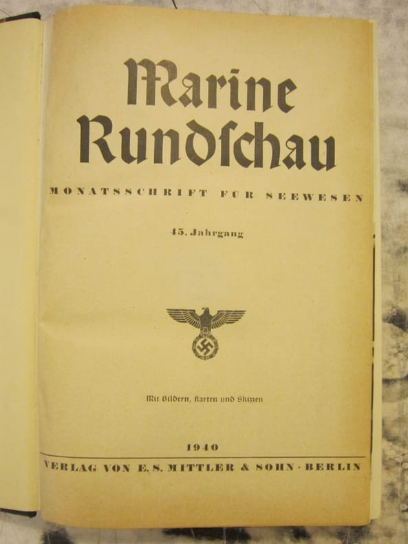 Marine, Rundschau. Monatschrift fur Seewesen, Berlin, In German, 1932, 1940. The listing price of $99 is for a single issue of the periodical. Several issues are available during the period indicated in the listing title. Please inquire about availability of specific issues, id3-009194