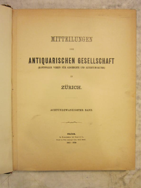 Mitteilungen der Antiquarischen Gesellschaft, Zurich, In German, 1909, 1911, 1913, 1915, 1916, 1917, 1918, 1919, 1920. The listing price of $99 is for a single issue of the periodical. Several issues are available during the period indicated in the listing title. Please inquire about availability of specific issues, id3-009215