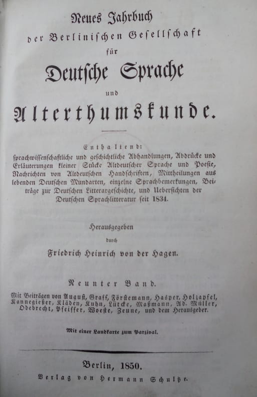 Neues Jahrbuch Deutsche Sprache Alterthumskunde, publisher: Verlag von Hermann Schulte, Berlin, 1843, 1848, In German. The listing price of $99 is for a single issue of the periodical. Several issues are available during the period indicated in the listing title. Please inquire about availability of specific issues, id3-009245