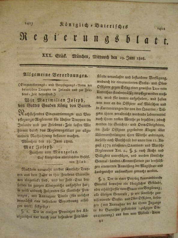 Koniglich- Baierisches Regierungsblatt, Munchen, 1806, In German. The listing price of $99 is for a single issue of the periodical. Several issues are available during the period indicated in the listing title. Please inquire about availability of specific issues, id3-009093