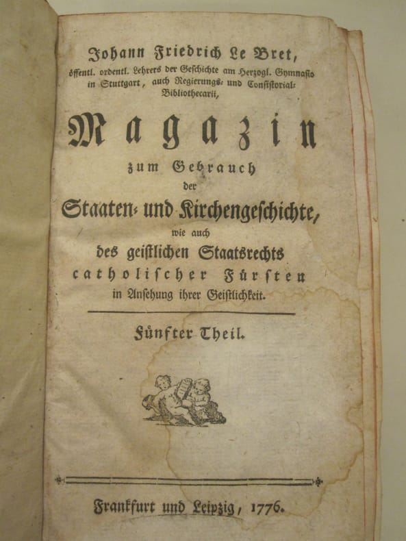 Magazin zum Gebrauch der Staaten und Kirchengeschichte wie auch des geistlichen Staatsrechts katholischer Regenten in Ansehung ihrer Geistlichkeit, Frankfurt/Leipzig, 1776, In German. The listing price of $299 is for a single issue of the periodical. Several issues are available during the period indicated in the listing title. Please inquire about availability of specific issues, id3-009534