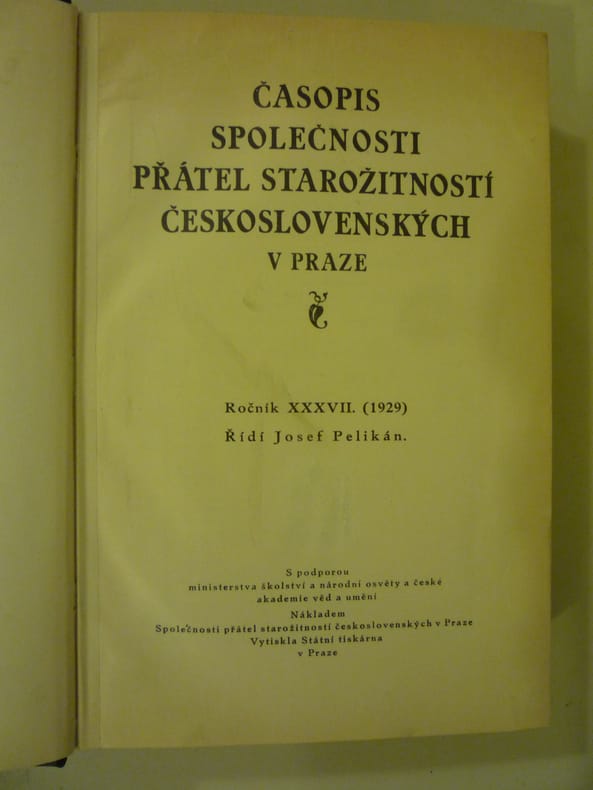 Casopis Spolecnosti Pratel Starozitnosti Ceskoslovenskych v Praze, Prague, In Czech, 1929, 1930, 1931. The listing price of $299 is for a single issue of the periodical. Several issues are available during the period indicated in the listing title. Please inquire about availability of specific issues, id3-009548