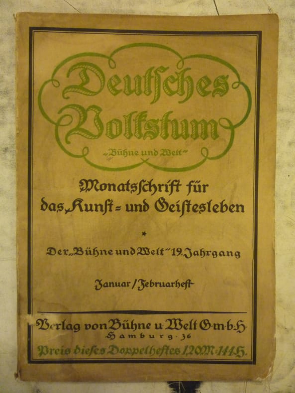 Deutsches Volkstum, Hamburg, 1917, In German. The listing price of $99 is for a single issue of the periodical. Several issues are available during the period indicated in the listing title. Please inquire about availability of specific issues, id3-009636