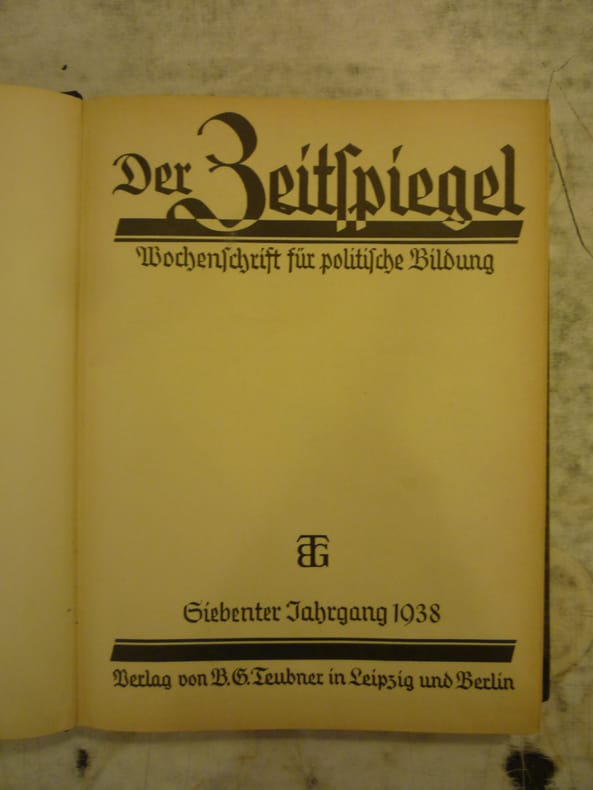 Der Zeitspiegel, publisher: B.G. Teubner, Berlin/Leipzig, 1938, In German. The listing price of $99 is for a single issue of the periodical. Several issues are available during the period indicated in the listing title. Please inquire about availability of specific issues, id3-009639