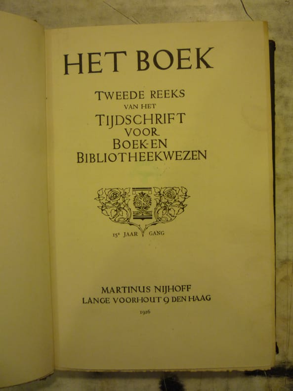 Het Boek Tweede Reeks van Het Tijdschrift Voor Boek, en Bibliotheekwezen, publisher: Martinus Nijhoff, 1926, In Dutch. The listing price of $299 is for a single issue of the periodical. Several issues are available during the period indicated in the listing title. Please inquire about availability of specific issues, id3-009640
