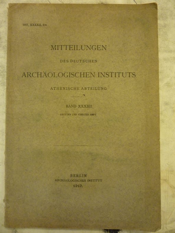 Mitteilungen des Deutschen Archaologischen Instituts, publisher: C. Brugel und Sohn, Berlin, 1919, In German. The listing price of $99 is for a single issue of the periodical. Several issues are available during the period indicated in the listing title. Please inquire about availability of specific issues, id3-009646