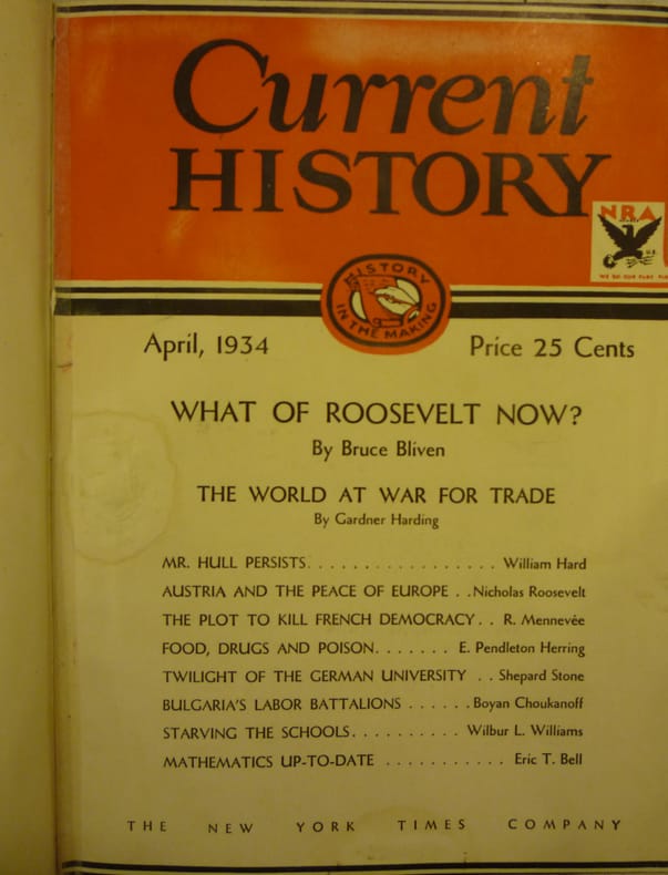 Current history, publisher: The New York York Times Company, New York, In english, 1929, 1930, 1931, 1932, 1933, 1934, 1936, 1937. The listing price of $99 is for a single issue of the periodical. Several issues are available during the period indicated in the listing title. Please inquire about availability of specific issues, id3-009693