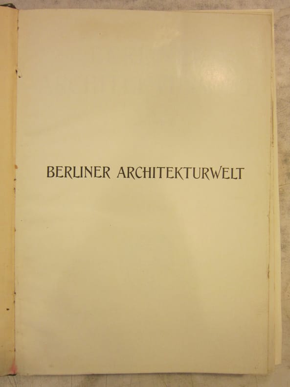 Berliner Architekturwelt. In German /Berliner Architekturwelt. Berlin in German 1907. We have thousands of titles and often several copies of each title may be available. Please feel free to contact us for a detailed description of the copies available. SKUalb40361ca35bf400a4.