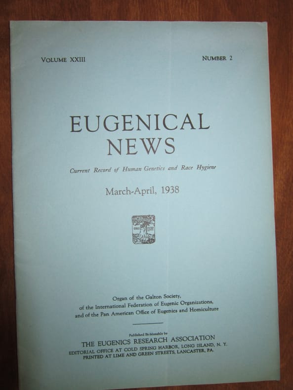 Eugenical News, Long Island, In english, 1934, 1935, 1936, 1937, 1938. The listing price of $99 is for a single issue of the periodical. Several issues are available during the period indicated in the listing title. Please inquire about availability of specific issues, id3-009746