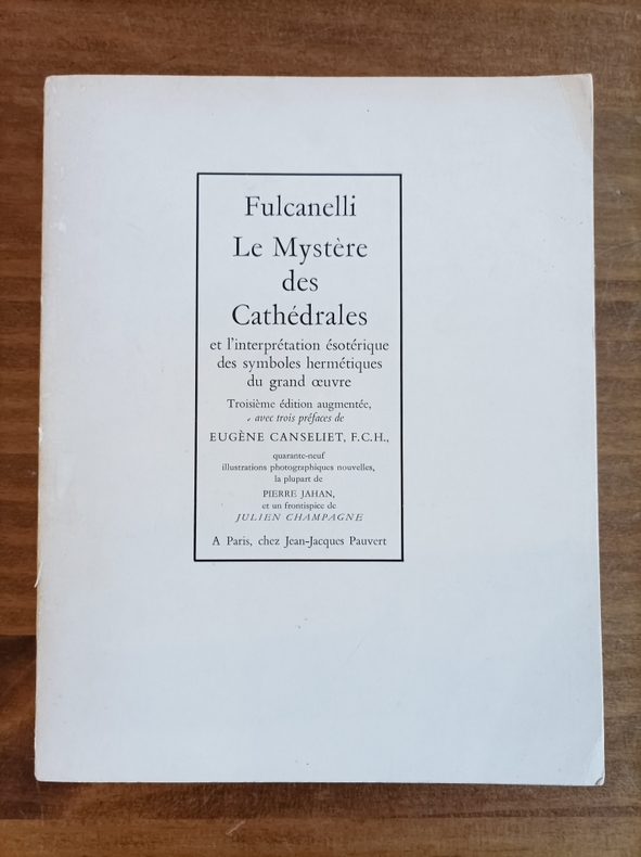Société Nouvelle des Editions Pauvert, 1985, in-8 carré br. (18 x 23), 243 p., 3ème édition augmentée avec trois préfaces de Eugène Canseliet, 49 illustrations photographiques nouvelles, la plupart de Pierre Jahan, frontispice de Julien Champagne, pliure angulaire au plat sup., intérieur très propre, bon état.