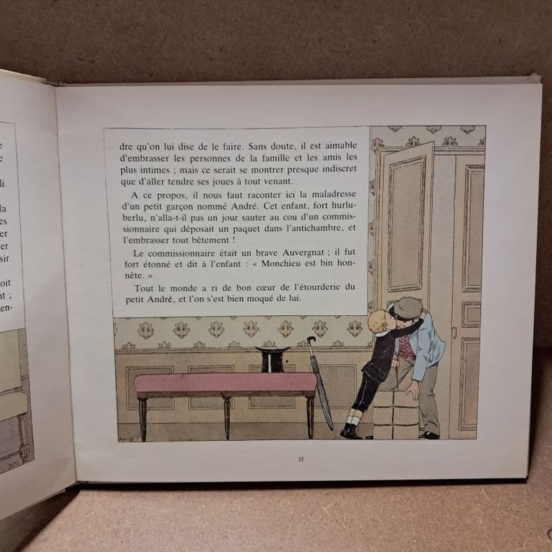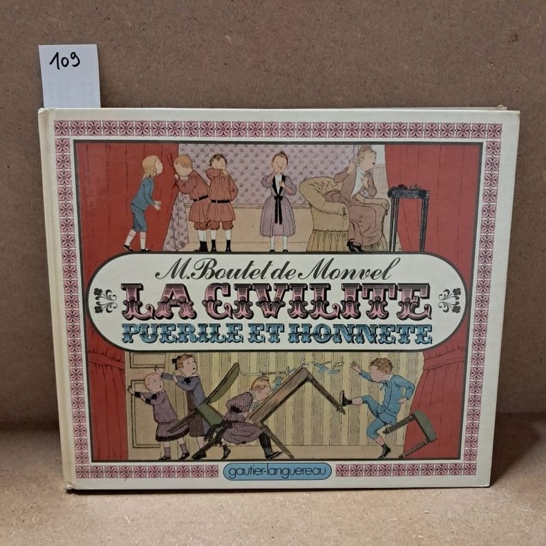 1979 - cartonné - Editions Gautier-Languereau - 1979 - In-8, format à l'italienne (23 x 27 cm) cartonnage illustré - 47 pages - Illustrations en couleurs de Boutet de Monvel - ISBN : 2.217.13001.3 - Titre complet : La civilité puérile et honnête, expliquée par l'oncle Eugène - Ouvrage de littérature jeunesse, avec de belles illustrations