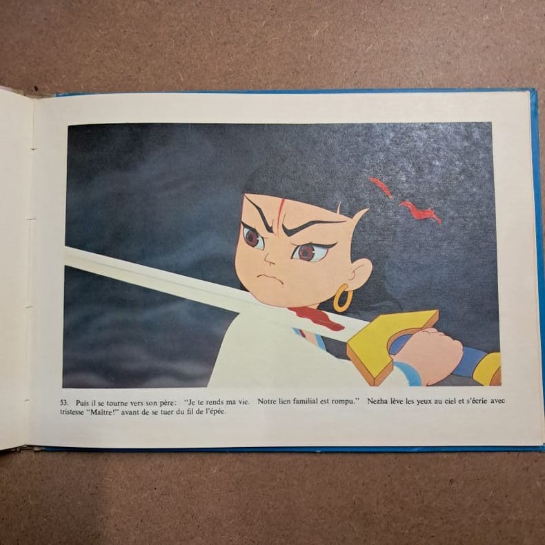 1980 - cartonné - Editions en Langues étrangères, Beijing - 1980 - In-8 format à l'italienne, (18,5 x 26,5 cm), cartonnage illustré, dos toilé kaki - 80 pages - Illustrations (photos du film) de Duan XIAOXUAN, Jiang YOUYI & Jin ZHICHENG - Le conte "Nezha trouble la mer" est une adaptation du film d'animation du même titre, tiré du roman mythologique "L'Apothéose des Héros". Ouvrage imprimé en République populaire de Chine