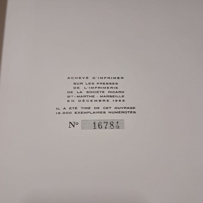 1965 - broché - Editions Ricard - 1965 - In-4 (31 x 23,5 cm) broché, couverture illustrée - Pages non numérotées - 7 feuillets volants d'illustrations en couleurs - Achevé d'imprimer sur les presses de l'imprimerie de la société Ricard Ste-Marthe. Il a été tiré de cet ouvrage 19.000 exemplaires. Exemplaire numéroté N° 16784
