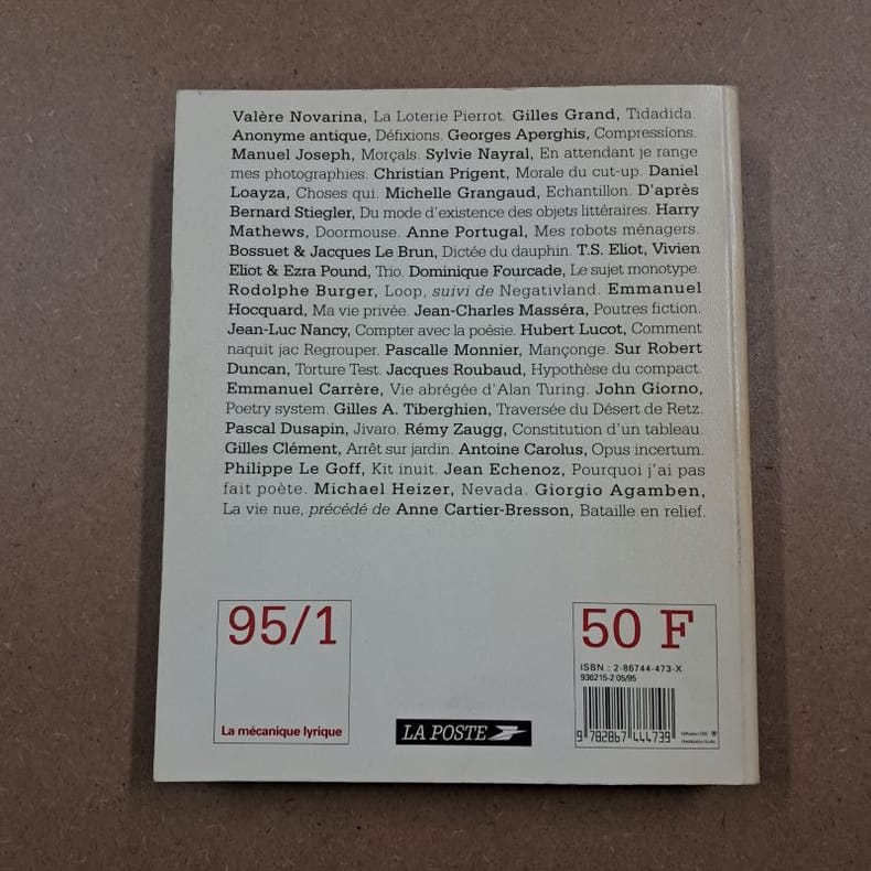 1995 - broché - P.O.L - 1995 - Fort in-8 (24 x 20 cm) broché - 419 pages - Revue dirigée par Pierre ALFERI et Olivier CADIOT - ISBN : 2-86744-473-X / 9782867444739 - SOMMAIRE : La loterie Pierrot (Valère NOVARINA) - Tidadida (Gilles GRAND) - Compressions (Georges APERGHIS) - Morçals (Manuel JOSEPH) - En attendant je range mes photographies (Sylvie NAYRAL) - Du mode d'existence des objets littéraires (d'après Bernard STIEGLER) - Mes robots ménagers (Anne PORTUGAL) - ...