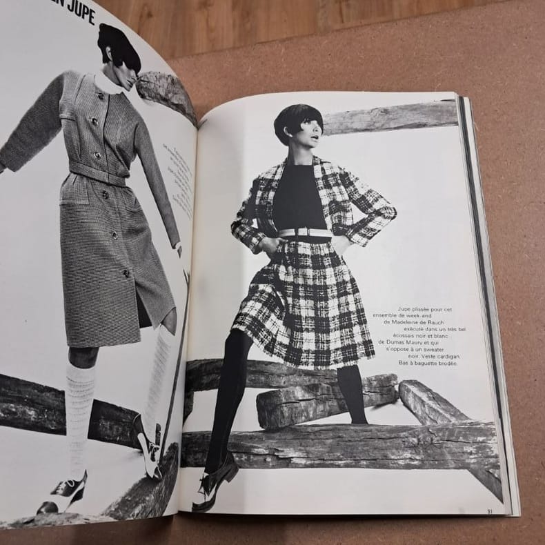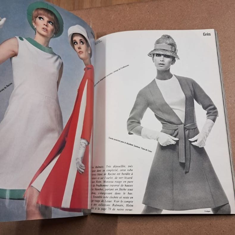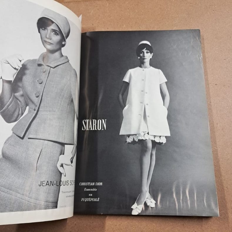 1966 - broché - Numéro 527-528 - Mars 1966 - Revue bimrestrielle imprimée en France - Fort in-4 (33 x 24 cm) broché, couverture illustrée (Tailleur de Christian DIOR en Milarod de Lesur) - Pagination non continue - Très nombreuses photographies en couleurs et en noir et blanc - A. CASTANIÉ (Directrice) - Contient les pages de publicité