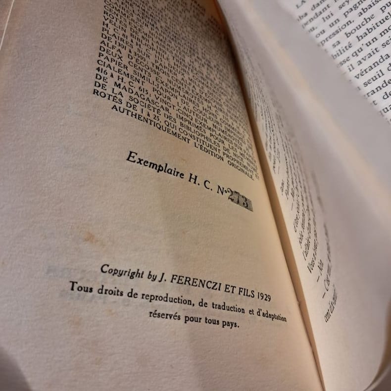 1929 A Paris, J. Ferenczi & Fils, Editeurs - 1929 - Edition originale - In-12 (19 x 12,5 cm) broché, sous pochette cristal - 270 pages sur papier Alfa - Feuillets non coupés - Il a été tiré de cet ouvrage, hors commerce, trois cent exemplaires sur Alfa d'Ecosse, numérotés H.C. 116 à 415. Exemplaire numérote H.C. N° 273