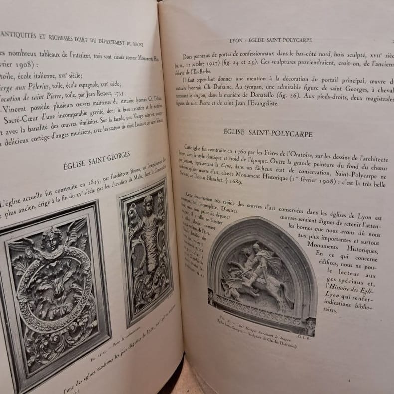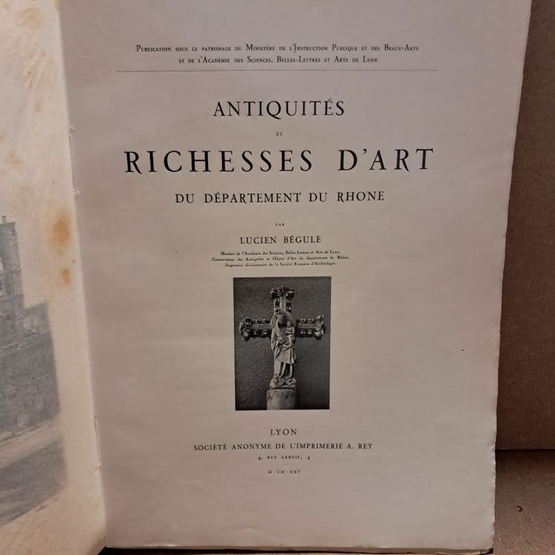 1925 - broché - A Lyon, Société Anonyme de l'Imprimerie A. Rey - Publication sous le patronage du Ministère de l'Instruction Publique et des Beaux-Arts et de l'Académie des Sciences, Belles-Lettres et Arts de Lyon - MCMXXV (1925) - In-folio (31 x 22,5 cm) broché, couverture rempliée avec pièce d'illustration sur la première de couverture - XVI + 165 pages - Illustré de 210 gravures dans le texte et 51 planches en phototype - Ouvrage tiré à 500 exemplaires, sans justificatif de tirage
