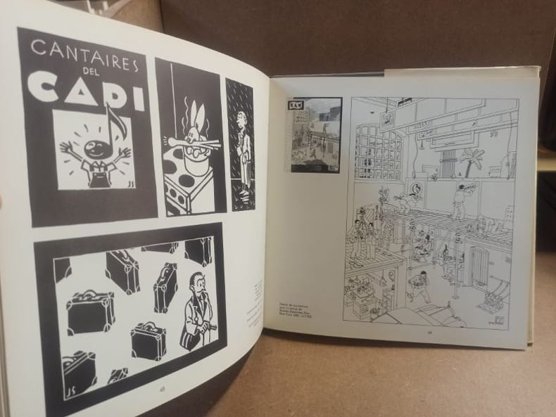 Futuropolis In-4°, reliure plein cartonnage ill au centre d'un petit meuble à tiroirs sous jaquette blanche et noire, image frontispice en noir, nombreuses illustrations dont certaines en couleurs et d'autres en noir et blanc (p 18-19,22-23,26-29,30-40,42-43,46-51,64 ), chronologie comportant de nombreuses vignettes (illustrés et parutions), 91 pages, bel exemplaire (petite rayure horizontale).