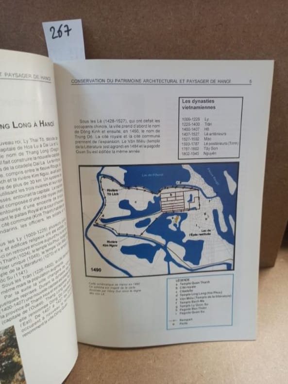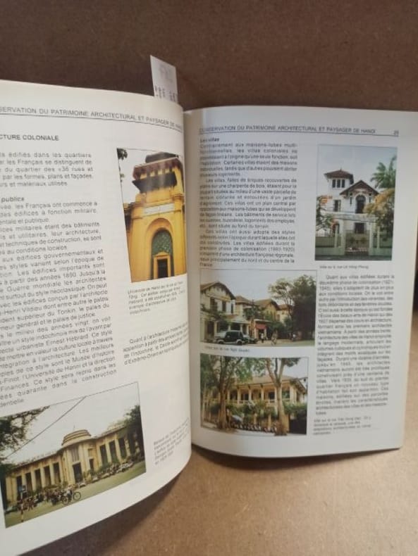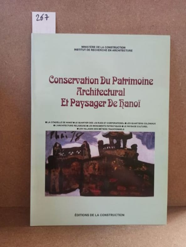 1998 - broché - Editions de la Construction - Ministère de la Construction. Institut de Recherche en Architecture - 1998 - In-4 (26,5 x 19 cm) broché - 52 pages - Nombreuses photographies en couleurs et plans - Tiré à 520 exemplaires, sans justificatif de tirage - Ouvrage réalisé et produit avec l'assistance technique du Centre Canadien d'études et de coopération internationales (CECI) et l'aide financière de l'ambassade du Canada à Hanoï dans le cadre d'un projet de sensibilisation au patrimoine architectural de Hanoï - Vu Quoc CHINH (Editeur et Directeur de la Maison d'Edition de la Construction) - SOMMAIRE : La citadelle de Hanoï - Le quartier des "36 rues et corporations" - Les quartiers coloniaux - L'architecture religieuse - Les monuments patriotiques - Le paysage culturel - Les villages des métiers traditionnels