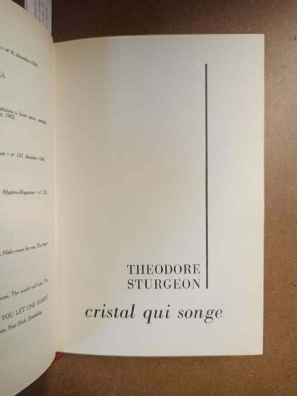 Tirage limité à 5150 exemplaires, celui-ci un des 5000 numérotés (888). Le rhodoïd manque mais, Cristal qui songe étant l'un des plus palpitants romans de science-fiction qui soit (à notre humble avis), on lui pardonne.