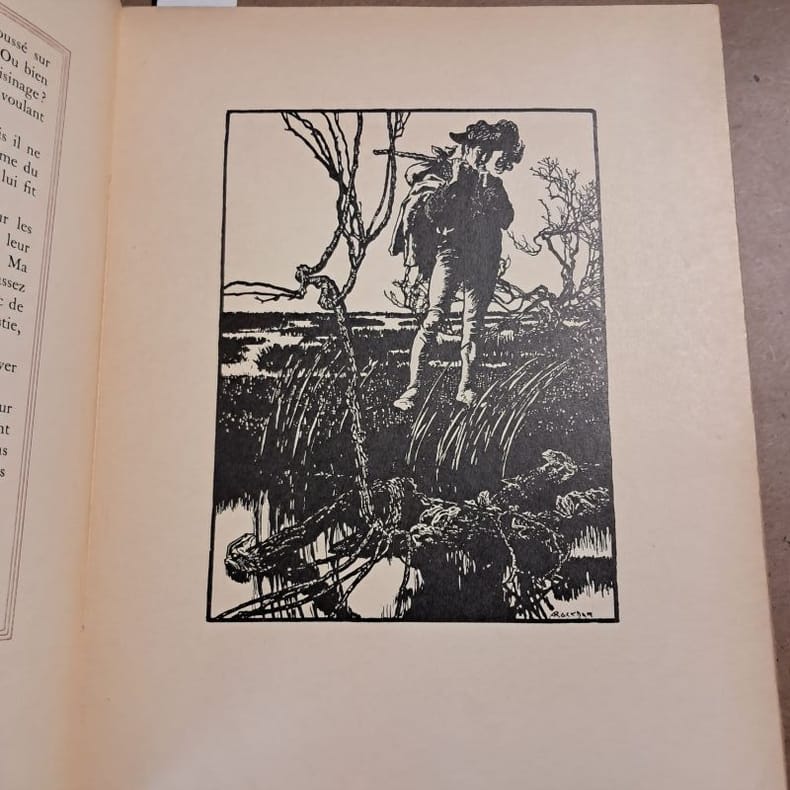1922 - broché - L'Edition d'Art H. Piazza, Paris - Achevé d'imprimer le vingt-cinq septembre 1922, sur les Presses de l'Imprimerie G. Kadar à Paris - In-4 (30,5 x 23,5 cm) broché, couverture rempliée avec illustration sur la première de couverture - 103 pages - Superbes illustrations de Arthur RACKHAM : 16 gravures en couleurs avec serpentes légendées contrecollées, 6 gravures en noir, 7 compositions in texte, lettrines et texte encadré d'un liseret - Ouvrage tiré à 1300 exemplaires. Exemplaire numéroté N° 766