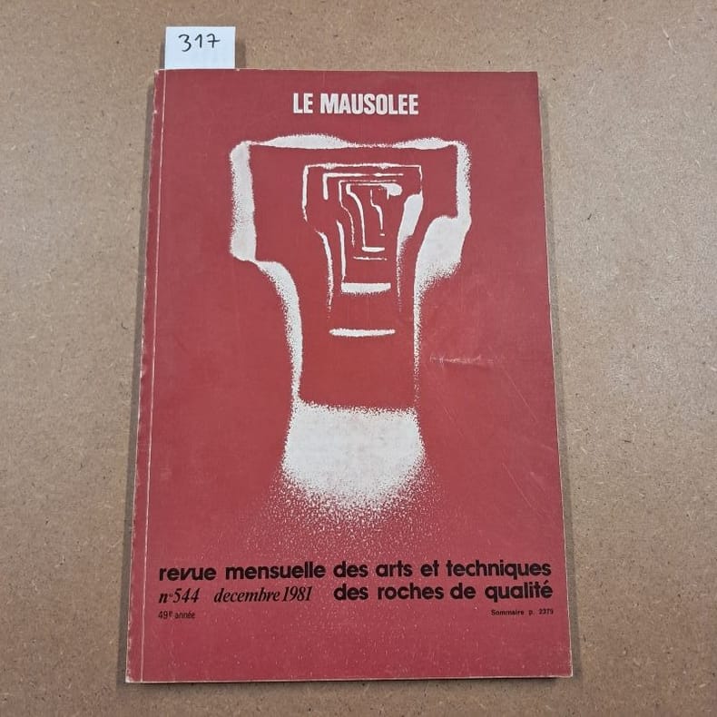 1981 - broché - Numéro 544 - Décembre 1981 - 49e année - Revue mensuelle - In-8 (27 x 18 cm) broché - p. 2323 à 2536 - Illustrations et photographies en noir et blanc - Revue fondée en 1933 par R. MOTINOT - Le Mausolée était une revue professionnelle publiée à Givors et dédiée aux métiers de la pierre et des carriers et à l’architecture funéraire. Elle mêlait articles techniques (géologie appliquée, taille, marbrerie, restauration), études de cas sur monuments et chantiers funéraires, inventaires de carrières et comptes rendus de congrès, le tout abondamment illustré par des photographies et publicités professionnelles présentant outillage, matériaux et services. Destinée aux praticiens, aux conservateurs et aux historiens du bâti, la revue servait de lien entre savoir-faire artisanaux et enjeux de conservation du patrimoine funéraire.