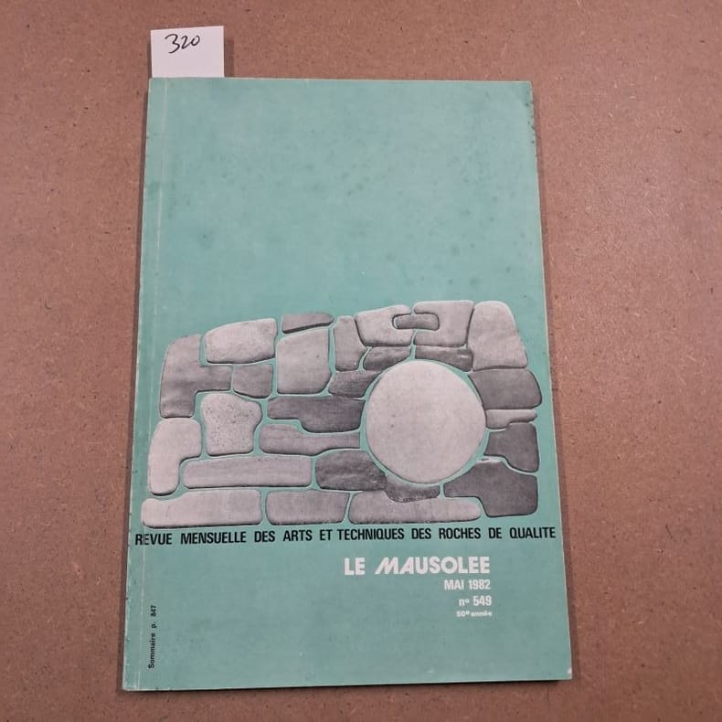 1982 - broché - Numéro 549 - Mai 1982 - 50e année - Revue mensuelle - In-8 (27 x 18 cm) broché - p. 785 à 961 - Illustrations et photographies en noir et blanc - Revue fondée en 1933 par R. MOTINOT - Le Mausolée était une revue professionnelle publiée à Givors et dédiée aux métiers de la pierre et des carriers et à l’architecture funéraire. Elle mêlait articles techniques (géologie appliquée, taille, marbrerie, restauration), études de cas sur monuments et chantiers funéraires, inventaires de carrières et comptes rendus de congrès, le tout abondamment illustré par des photographies et publicités professionnelles présentant outillage, matériaux et services. Destinée aux praticiens, aux conservateurs et aux historiens du bâti, la revue servait de lien entre savoir-faire artisanaux et enjeux de conservation du patrimoine funéraire.