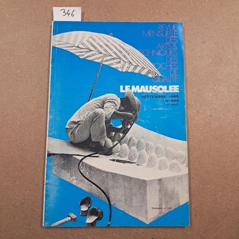 1985 - broché - Numéro 589 - Septembre 1985 - 53e année - Revue mensuelle - In-8 (27 x 18 cm) broché - p. 1380 à 1528 - Illustrations et photographies en noir et blanc - Revue fondée en 1933 par R. MOTINOT - René GARGI (Directeur de la publication) - Le Mausolée était une revue professionnelle publiée à Givors et dédiée aux métiers de la pierre et des carriers et à l’architecture funéraire. Elle mêlait articles techniques (géologie appliquée, taille, marbrerie, restauration), études de cas sur monuments et chantiers funéraires, inventaires de carrières et comptes rendus de congrès, le tout abondamment illustré par des photographies et publicités professionnelles présentant outillage, matériaux et services. Destinée aux praticiens, aux conservateurs et aux historiens du bâti, la revue servait de lien entre savoir-faire artisanaux et enjeux de conservation du patrimoine funéraire.